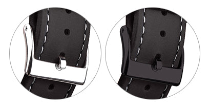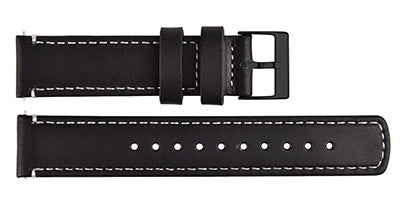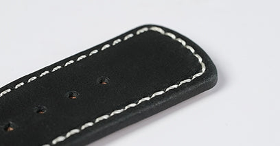 Black with white stitching leather straps is sure to be a good choice for any timepiece.The contrast stitching and polished buckle create a eye-catching look while you wear the band for Timex, Seiko and Citizen.No spring bar needed with quick release hardware.